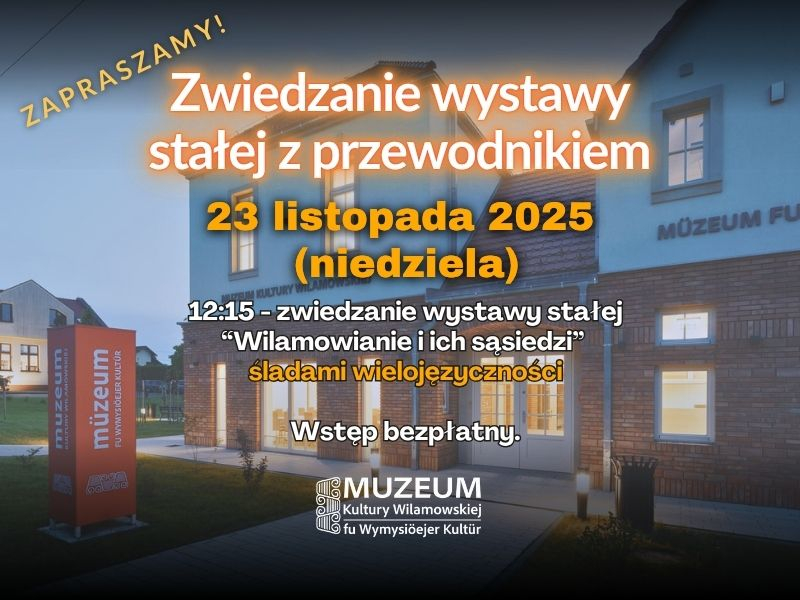 Bezpłatne, przeplatane ciekawostkami i anegdotkami zwiedzanie naszej wystawy stałej z przewodnikiem odbędzie się już w najbliższą niedzielę, 23 listopada o 12:15. Zwiedzanie będzie nakierunkowanie w szczególności na aspekty wilamowskiej wielojęzyczności. Zapraszamy serdecznie do wspólnego odkrywania tajemnic wilamowskiej historii :)