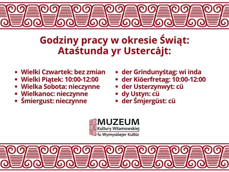 Szanowni Państwo, prezentujemy porządek pracy Muzeum w okresie Triduum Paschalnego i świąt Wielkiej Nocy: